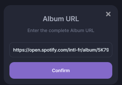 Then we’ll click on “Album URL,” the first entry on Soundiiz. Finally, click on “Confirm.” Repeat this process as many times as necessary. Copy, for example, the Deezer link, paste it into Soundiiz, copy the album link from Amazon Music, and so on.