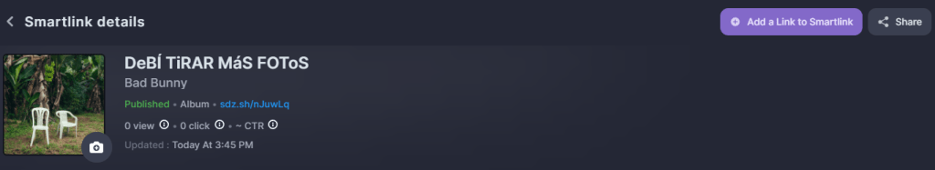 You’ll also see that you can create a Smartlink for a playlist, an artist profile, or even a song. Anything is possible.